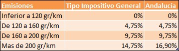 A continuación vemos los distintos tipos impositivos generales, así como el caso de Andalucía: